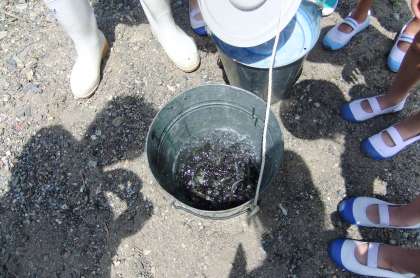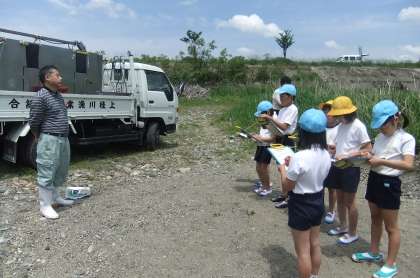 中江橋の下でアユの放流を行いました。生きのいいアユに子どもたちは驚いていました。放流したアユが元気に育ってほしいですね。