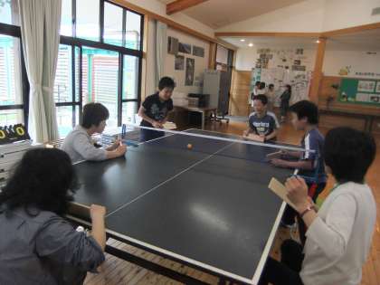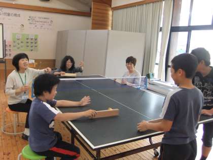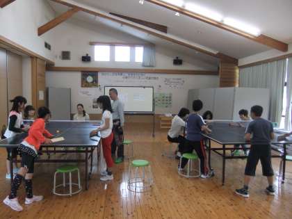 6年 学活「親子で楽しく」で,親子で楽しく卓球バレーを楽しみました。