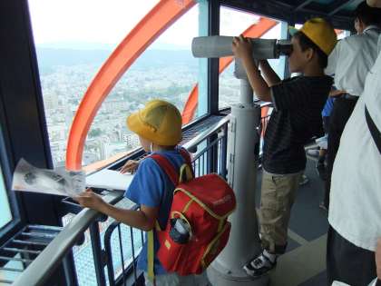 最後は、1番楽しみにしていた京都タワー。学習した通り、三方を山にかこまれた京都市内の様子や高速道路、たくさんのビル、お寺、京都ならではの碁盤の目になっている道路などを確認しました。