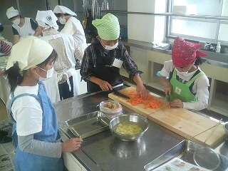 2日の活動が始まりました。昼食を作ろう 伝統食や山菜料理の調理実習です。