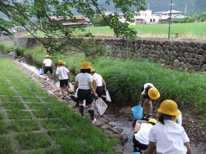 今回は、近くの川に生き物さがしに行きました。
