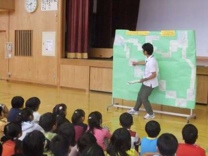 6月15日 今日の朝会は,松永先生のお話でした。今日のお話は,「山口100萩往還マラニック大会」に参加したお話でした。250kmを48時間以内に走り切る大会で,今年は,449人中 220人が完走したそうです。もちろん松永先生も完走されました。走っていて一番つらいのは,睡眠がとれないことで,3日間で45分しか寝ていなかったそうです。子どもたちも「すごいなあ!」と感心していました。