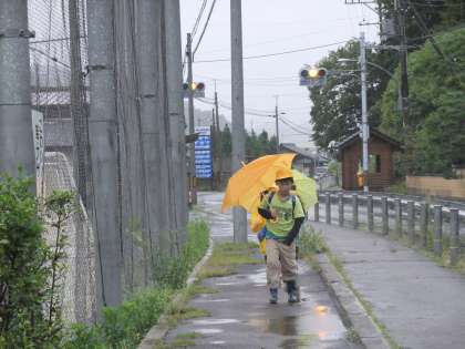 6月19日 午前8時前,子どもたちが雨の中,しっかり傘を差して登校してきました。風がゴーと音を立て始めてきました。だんだん強い雨風になってきました。