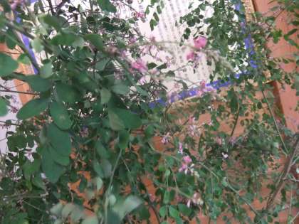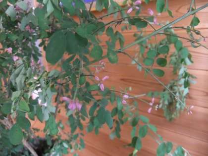 7月13日 今朝は,朝から蒸し暑い日になりました。気温は,7時現在23度と高いです。今日から,玄関に「ハギ」の華を生けました。7月から9月にかけて野山に咲いています。よく観ると,花びらがピンクでとてもかわいい花が咲いています。