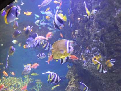 7月14日 水族館の中では,大きなサンショウウオやイワナ・アマゴ・コイなど京北では身近な魚から,普段見ることが出来ないハモ・サメ・エイなどがいました。また,可愛いペンギンやクラゲも見ることができました。