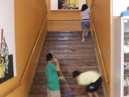 7月20日 1年生も掃除がすっかり上手になりました。廊下のぞうきんがけやぞうきん絞りもとっても上手です。お陰で教室も廊下もとても綺麗です。ありがとう!