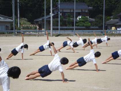 昨日までは体育館での練習でしたが,本日4校時にはじめて運動場に出て練習をしました。子どもたちは自分の並ぶ位置を確認したり,二人技・三人技…と相手とのタイミングを合わせていました。最後のタワーも成功し,子どもたちもホットしていました。これから更に練習を重ねて頑張ります。(演技中のバックに流れる音楽をお楽しみに)