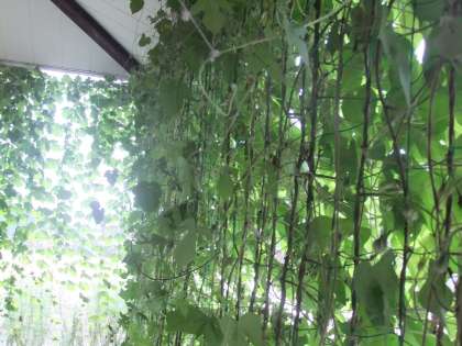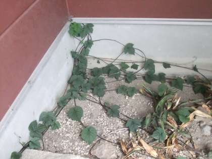 9月10日 緑のカーテンのオーシャンブルーのツルがどんどん伸びて,校舎をつたって広がっています。また,学校園の前にも伸びていて何となく不気味です。何処まで行くのでしようか。