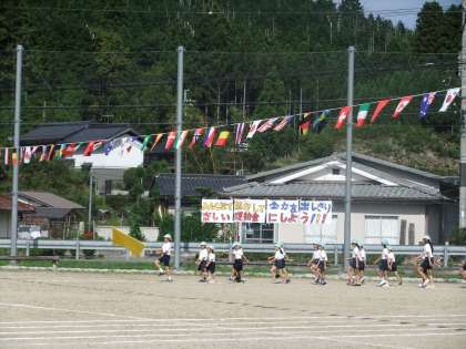 9月15日 平成24年度京北第二小学校の運動会が開催されました。今年のスローガンは「みんなで協力して 全力を出し切り 楽しい運動会にしよう!」です。