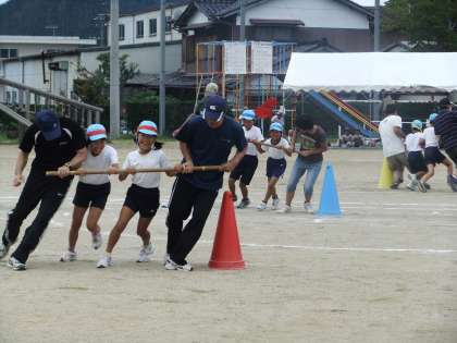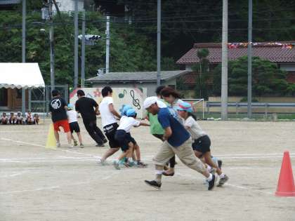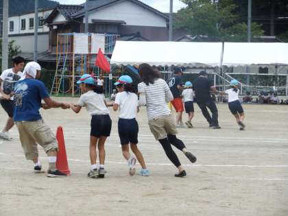 9月18日 運動会では,3・4年の親子競技は「台風の目」でした。大きな二つの台風の目が運動場を回っていました。