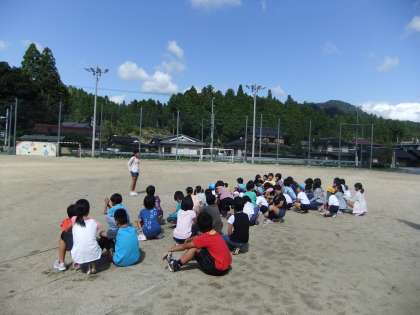 10月3日(水)今日の中間休みに全校遊びをしました。6年生が中心となって,氷おにをしました。今日は天気もよく,さわやかな風を受けながらみんな元気に走り回っていました