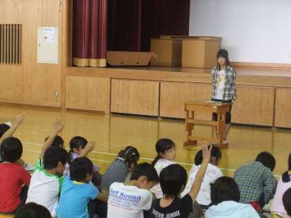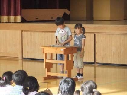 10月12日(金)6校時に体育館で,前期児童会総会がありました。総会では,委員会・縦割りの色別班,また各学年から前期の反省・後期の課題が発表されました。みんなしっかり発表できていました。