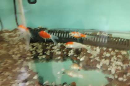 10月12日 今週から新しい仲間が玄関の水槽にやって来ました。かわいい金魚です。メダカの水槽の上に入れました。赤と白の混ざった5〜6センチメートルの金魚です。一度,観に来てくださいね。