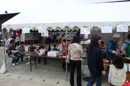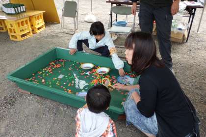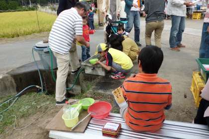 さきがけフェスタでは,子どもは,スーパーボールすくいやメダカすくい,教職員はうどんコーナーとたこ焼きコーナーのボランティアをしました。メダカすくいや当てもんコーナーは,多くの幼児や小学生が集まっていました。教職員のコーナーは,列が出来るぐらい好評でした。