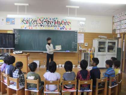 今日は,ボランティアの「読み聞かせ」が1年生でありました。今回は,「ゆうちゃんのみきさーしゃ」と「おとなしいめんどり」という絵本での読み聞かせでした。みんな楽しそうに聞いていました