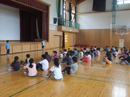 10月17日(水)中間休みに4年生が中心になっての全校遊びが体育館でありました。今日のあそびは,けいどろをしました。みんな元気に走り回っていました。