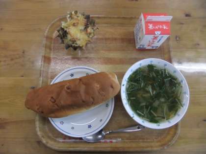 今日の献立は,チーズコッペパン・牛乳・きのこのグラタン・野菜スープでした。きのこのグラタンは温かくて,きのこをたくさん入り大変おいしくいただけました。野菜スープもおいしかったです。
