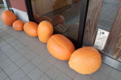 10月19日 10月31日のハロウインに向けて,ビッグカボチャが玄関に集まりました。地域の方のご協力で,大小10個以上集まります。来週からカボチャに顔をつくっていこうと考えています。夜のライトアップを楽しみにしていてください。