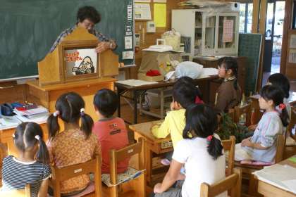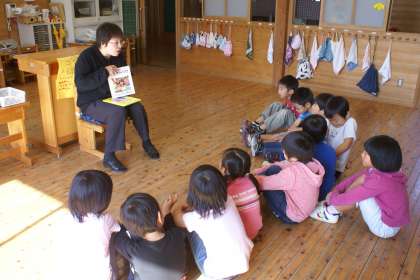 今日は先生達の読み聞かせです。子どもたちも先生も楽しみにしています。