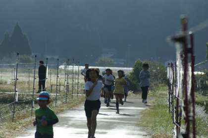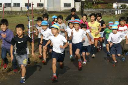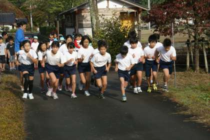 昨日の雨とはうってかわって秋の日差しの中子どもたちは朝マラソンを頑張っています。