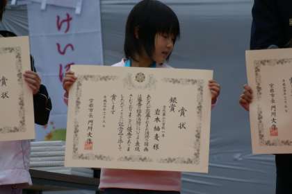 好天にめぐまれ京北ふれあいまつりが開かれました。祭りの中で頑張ってきた子どもたちの表彰があり第二小学校の児童も「消防の図画」「農協 ごはんと・お米とわたし」図画の表彰をうけました。