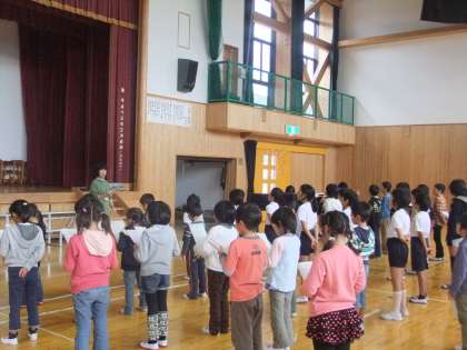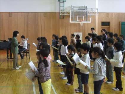 今日から,学習発表会で合唱する,全校合唱の練習が体育館ではじまりました。みんな元気よく大きな声で歌っていました。