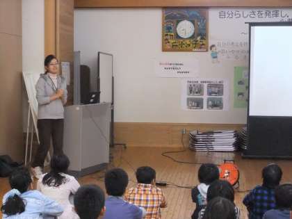 11月9日(金)今日の朝会は,藤本先生のお話でした。幼い時から今日まで,ビーズで作ったいろいろな作品を,写真で紹介していただきました。米粒ぐらいの小さなビーズをたくさん組み合わせての作品に,子どもたちは大変興味深い様子でした。