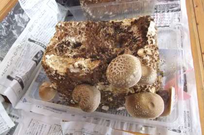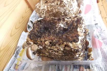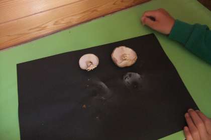 12日(月)日曜日に収穫したしいたけを黒い画用紙の上に置いておきました。すると,しいたけの胞子を見ることができました。学校に来て「黒い画用紙が白くなってる!」と子どもたちがいち早く気付いてくれました。