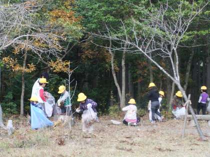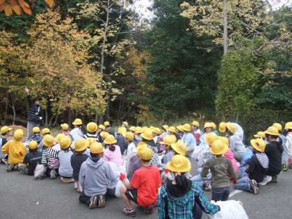 今日の午後,11月13日(火)の行われる「焼きいも大会」で使う落ち葉を、学校の近くにある森林公園までひろいに行きました。みんないっぱい、落ち葉をひろっていました。