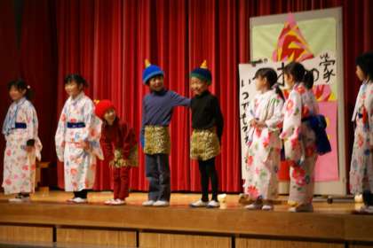 学習発表会 1年生から6年生まで各学年頑張りました。1年生は「ぞうれっしゃがやってきた」 2年生は「ないた赤おに」 3年生は「パイレーツ オブ 3年生」 4年生は「ヒュードロお化け学校」 5年生は「レッツ 米づくり」 6年生は「健康って・・・」 そして全校合唱。みんな一生懸命でとっても素敵な学習発表会でした。ご声援いただいた保護者の方々地域の方々ありがとうございました。