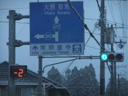二宮尊徳さんも寒そうです,今朝の京北7時現在マイナス2度!
