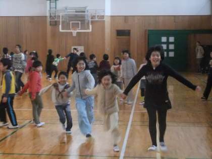 1月21日(月)今日は,朝の全校あそびが体育館でありました。今日のあそびは,手つなぎおにをしました。寒さを吹き飛ばすかのように,みんな元気に走り回っていました。