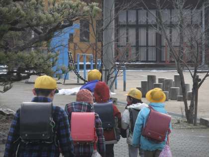 1月21日 今朝の京北地域は,グンと冷え込みました。辺りには先日降った雪の固まりが硬くなって残っています。登校してくる子どもたちは,みんな元気です。大きな声で「おはようございます!」と挨拶して昇降口に向かっています。
