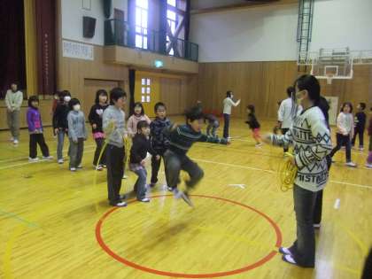 2月4日(月)いよいよ来週に迫ったなわとび大会。朝の大なわとびの練習で,八の字とびを3分間に連続して跳んだ今日の最高記録は,赤班の212回でした。休み明けですが,みんな一生懸命頑張って跳んでいました。