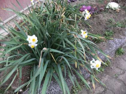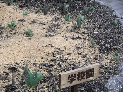3月10日 今朝の京北9時現在7度。冷たい雨が降っています。今日は,京都マラソン。応援に行っている子どももいるそうです。学校の玄関のトトロも姿を消し,雪の固まりがあと少し残っています。昨日までの暖かさで学校園のチューリップの芽もたくさん出てきました。水仙も一気に花をつけました。