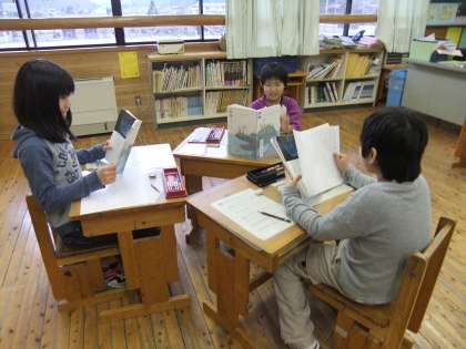 読みとった「豆太らしさ」「じさまらしさ」が表れるようにくふうして、グループで音読発表をしました。家庭学習でも何度も音読しているので、じょうずに読むことができました。