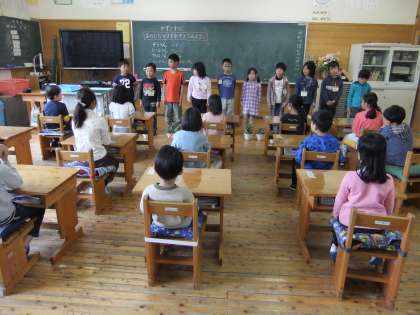 また放課後には、まなび教室の見学に行きました。入り口で挨拶をすること、名札を付けること、出欠票に○を付けることなどを教えていただき、まなびに来てくださっている先生方にもお会いできました。