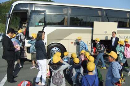 本日7時に全員集合し,バスに乗って出発!いよいよ修学旅行の始まりです。