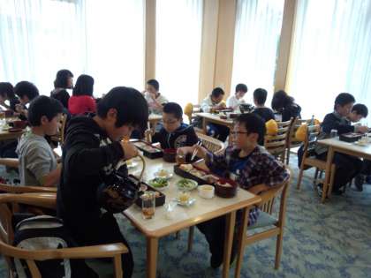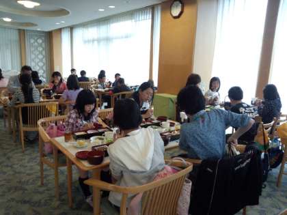 いよいよ食事も最後になりました。水族園から、少し歩いたのでお腹はすいています。みんな残さずしっかり食べました。これから最後の目的地、大阪に向かいます。