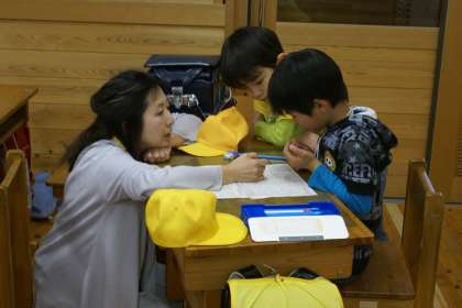 雨が降ってきましたがまなび教室は大にぎわい、1・2年生は全員来ています。