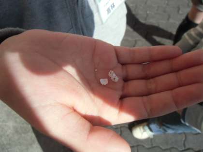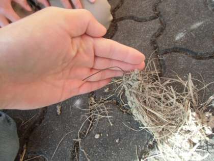 つばめの巣とたまごをよく見ると、巣の材料に「はりがね」も使われていたことがわかりました。また、たまごのからを見ると、うずらのたまごみたいな模様でした。