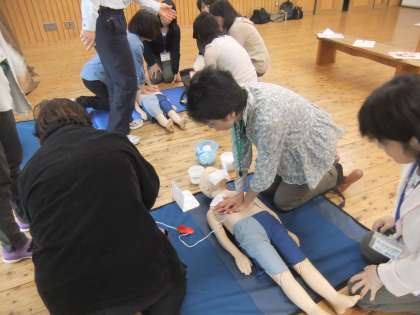 AEDの使用方法など実際にやってみました。