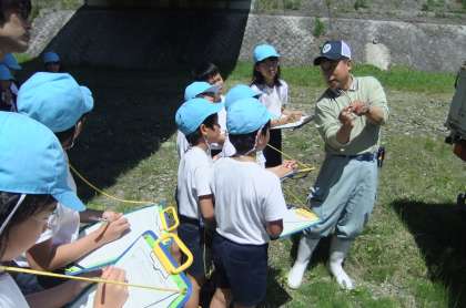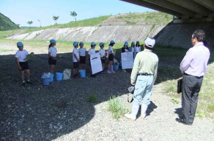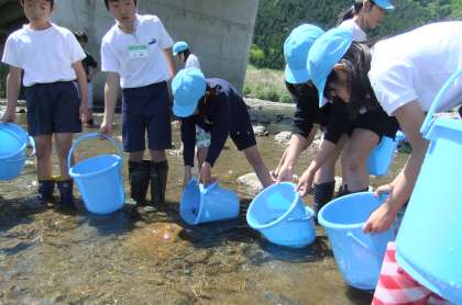 総合的な学習の一環で,今日は上桂川で鮎の稚魚を放流しました。とても元気のいい鮎を川に放ち,みんな大喜びでした。放流後は漁協の方から鮎の生態や料理法などを聞いて,とてもいい勉強になりました。放流した鮎が元気に大きく育ちますように・・・。