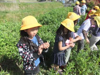 1・2年生合同でよもぎを摘みに行きました。