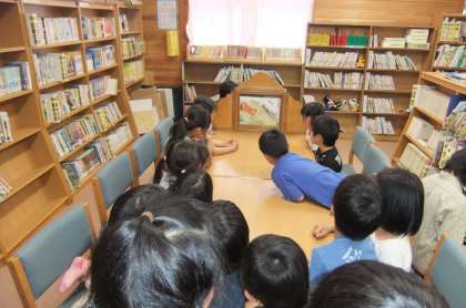 下の学年の子どもたちは喜んで見ていました。いろんなお話にふれることで