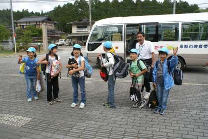 5年生が長期宿泊に出発しました。6名元気よく出発しました。