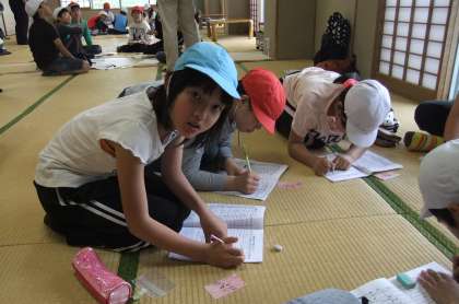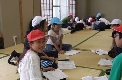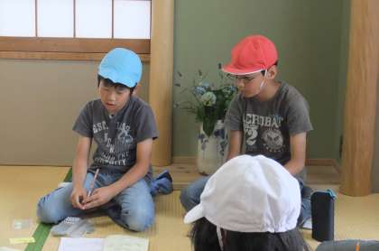 入所式の後、班会議が行われました。副班長・食事係・レクリエーション係・保健係を決めました。その後、係毎に分かれ、係会議。いよいよ、『1.友達と力を合わせて、楽しい宿泊生活をしよう。2.野外活動を通して、自然に親しみ、様々な体験活動で学ぼう。3.マナーを守り、社会のルールを身に付けよう。』という活動目標の実現に向けて、スタートです。