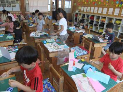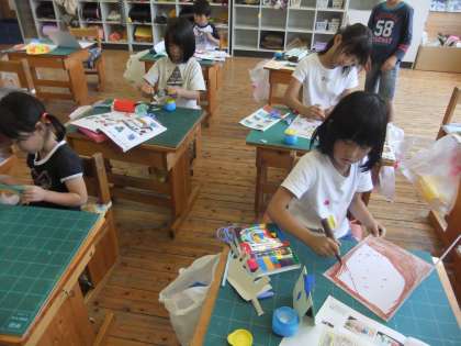 少し前ですが、図画工作の「おってたててゆめのまち」では、紙を立てて、自分の好きな町を作りました。