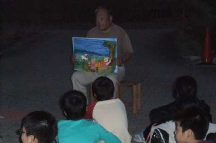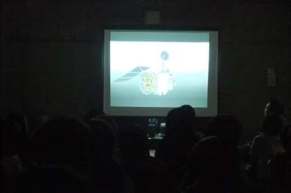 夜は天体観測、土星の輪を見る予定でしたが、あいにくの曇り空で、見られませんでした。その代わり、星座にまつわるお話や、DVDを見せていただきました。
