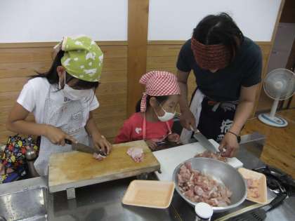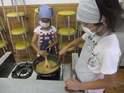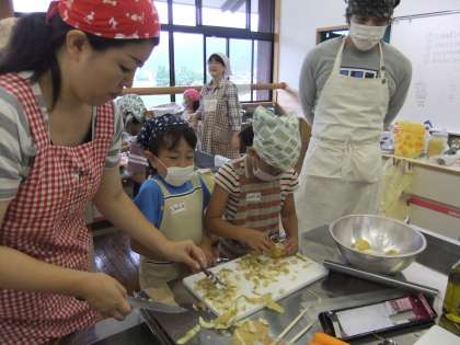 お家の方に手伝っていただきながら、皮むきをしたり、包丁で切ったり、すり下ろしたり・・・